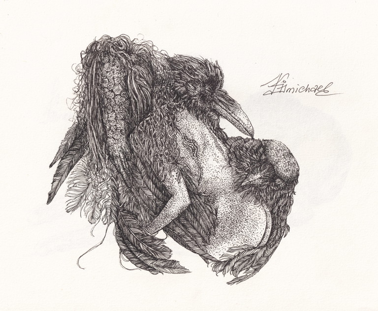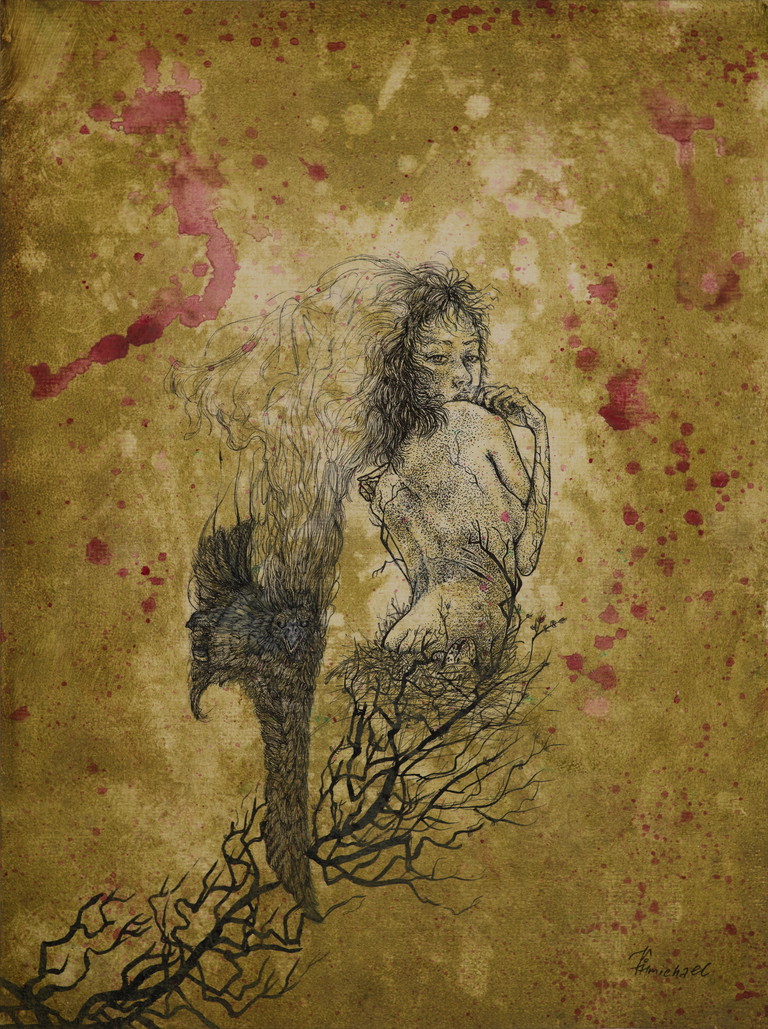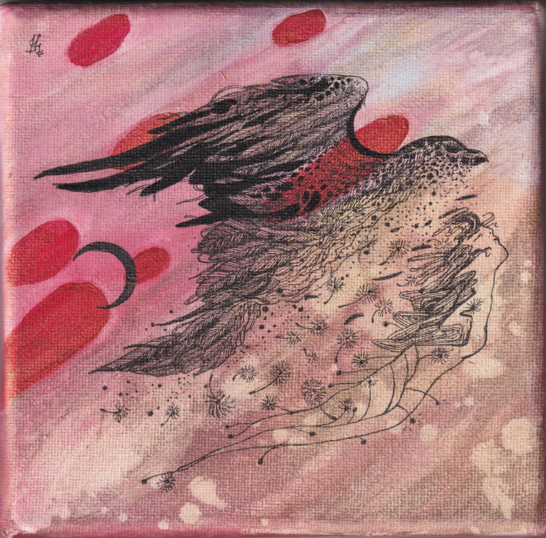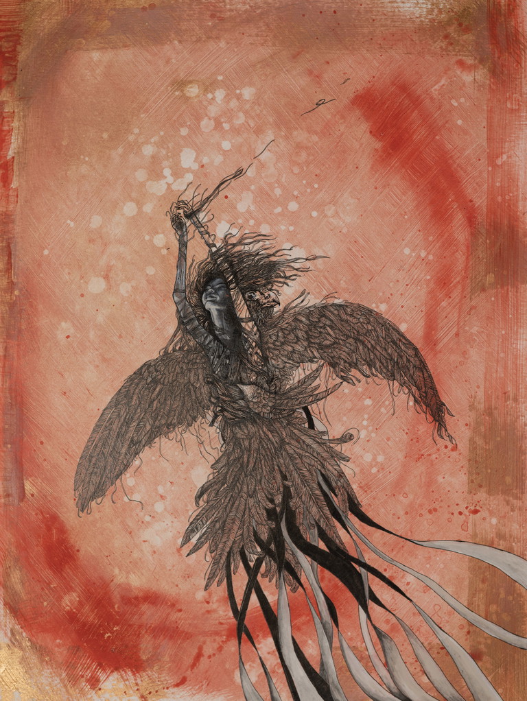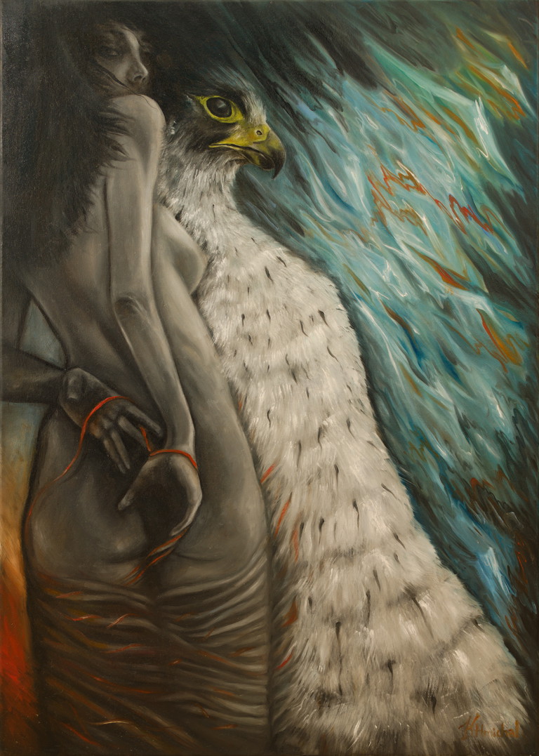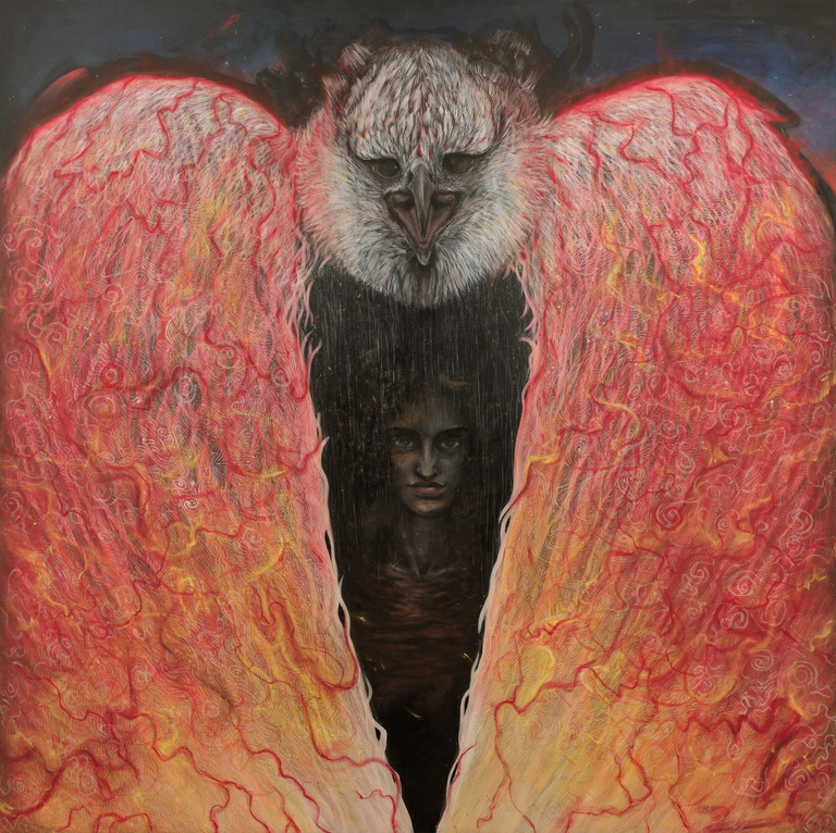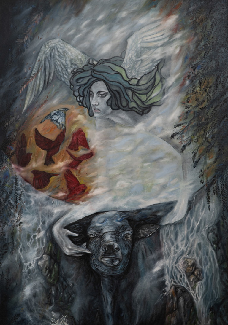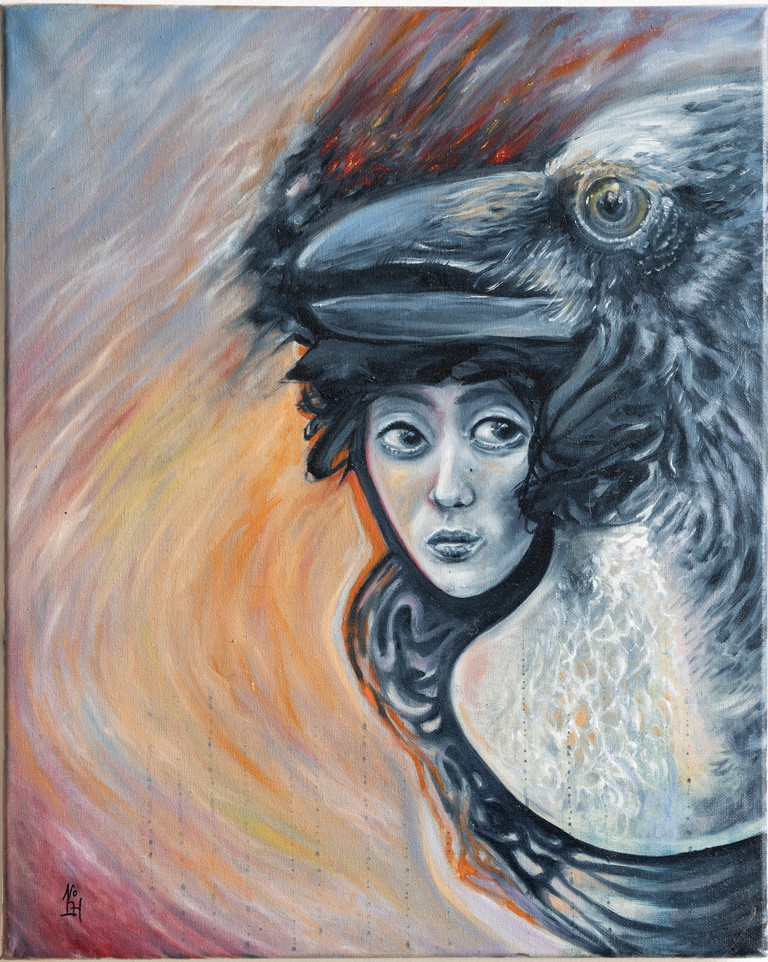 | Tags | spirit animal modern surrealism raven angel woman in art |