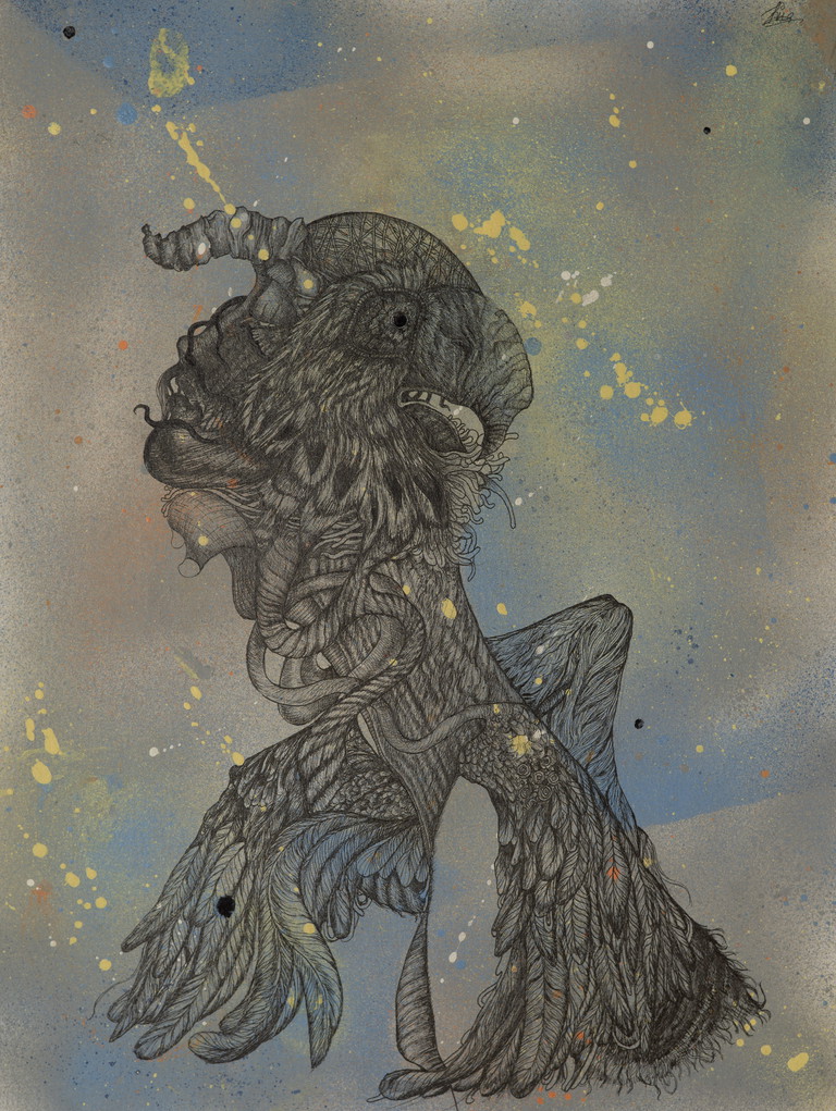 | Beschreibung | Acryl Spray und Tinte auf Papier |